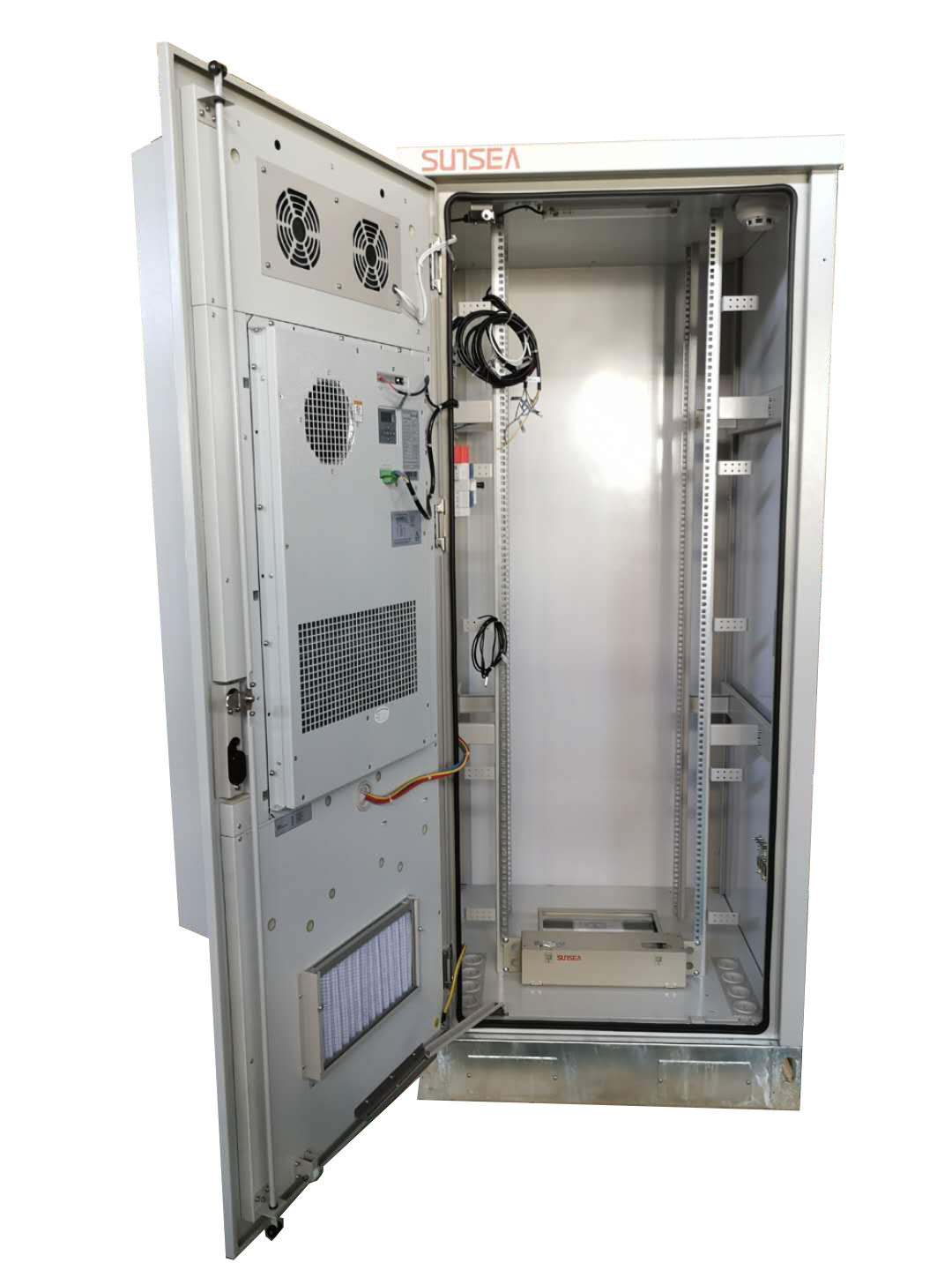 The cabinet contains Whole-assembled structure, frame + wall board + plinth + sunshied (optional). Cabinet can contain Power system,lithium battery,air conditioner, which about support devices provide protection and power supply for user telecommmunicaiton equipments.